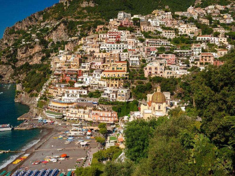 Positano es un paraíso natural, con sus aguas cristalinas, paisajes magníficos y un clima ideal. Lo que la hace más impresionante es el ambiente comunitario que se respira, donde todo el mundo se ríe con una copa de vino en la mano, los niños juegan libremente y todo el mundo dice hola con una sonrisa cálida y brillante. Después de un fantástico día de playa, puedes experimentar los placeres de su comida y bebida de calidad dentro de uno de los muchos restaurantes que hay a lo largo de la costa, o incluso de un pequeño paseo en barca, a menudo amenizado con música en directo. Como dijo John Steinbeck: «Positano te marca. Es un lugar de ensueño que no parece real mientras se está allí, pero que se hace real en la nostalgia cuando te has ido«.