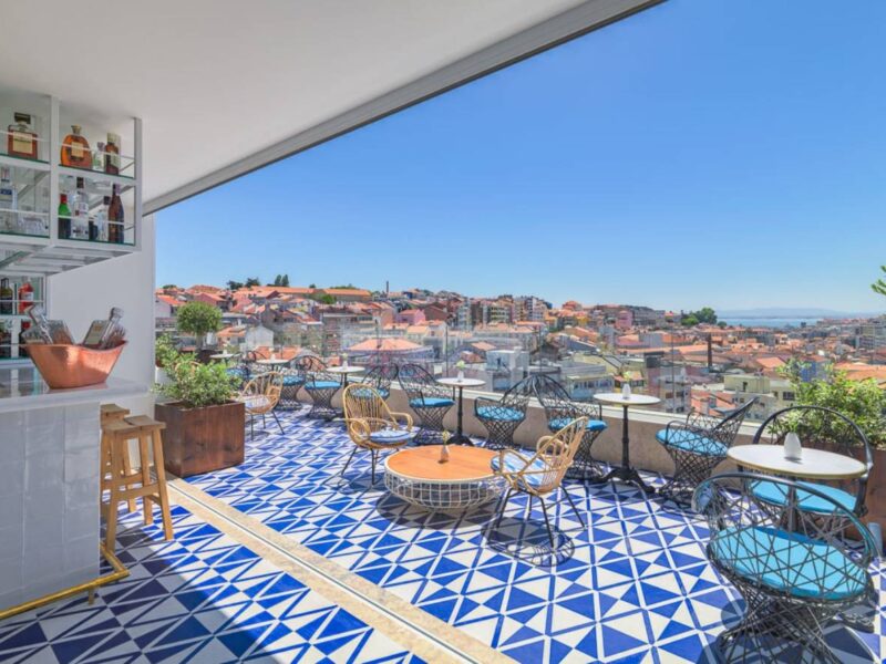 En el Hotel Mundial, ubicado en la animada plaza de Martim Moniz, se halla uno de los mejores secretos de la capital: el Rooftop Bar, un moderno bar en lo alto del edificio con espectaculares visitas al Castillo de San Jorge, el río y los tejados de la Baixa Pombalina. Este lounge panorámico celebra las fiestas al atardecer más famosas de la capital.