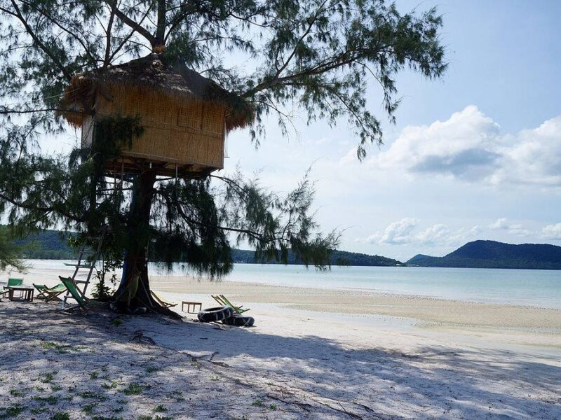 El atracadero de Koh Rong siempre está repleto de turistas y viajeros. Todo el complejo de cabañas está en la playa Tui Beach. Se trata de un grupo de cabañas pequeñas y sencillas, de madera. Los turistas solamente tienen que elegir una y preferiblemente con vista al mar.
