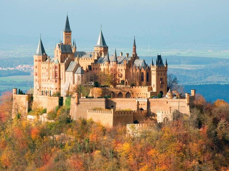 El castillo de Hohenzollern está muy próximo a Stuttgart (Alemania) y perteneció a la dinastía de los Hoherzollern. Ha sufrido muchísimas batallas y, por supuesto, muchas reparaciones que han conseguido que el castillo sea una amalgama de estilos que van desde lo más parco construido a principios de la Edad Media hasta un estilo neo-gótico inglés que es lo más representativo actualmente. Como hemos dicho antes, normalmente los castillos se construían en sitios elevados por motivos estratégicos. Éste lo hace sobre el monte Hohenzollern o como lo suelen llamar los lugareños, el «Zoller».